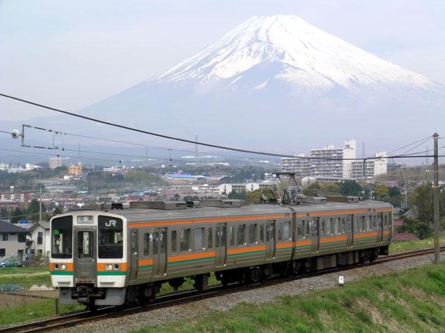 富士山と御殿場線普通列車 211系