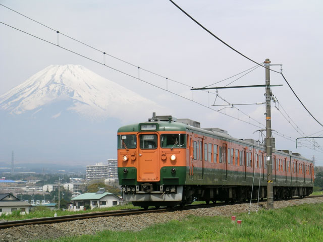 富士山と御殿場線普通列車 115系